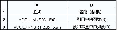 Array 为需要得到其列数的数组或数组公式,或对单元格区域的引用。