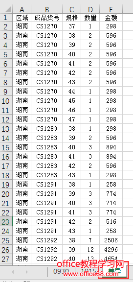 1、单击“0930”工作表名,按住Ctrl后水平向右移动,即可复制一张表,改名为“差异”,置于最末: