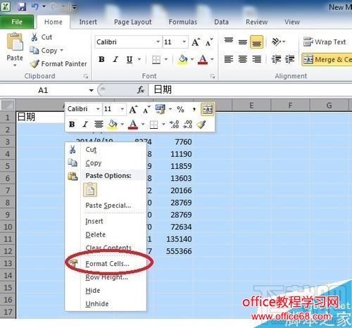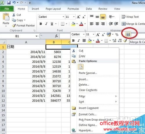 1、对于如图所示数据,需要添加表头,日期,数据 ![]() 2、选中第一行 ![]() 3、点击右键,选择插入,会插入一行在行首 ![]() 4、第一列输入日期,选择2,3两列,如图 ![]() 5、右键,选择如图按钮 ![]() 6、2个空格合并为一个空格,输入“数据” ![]() 7、日期是不是还不居中? 选择所有数据,右键选择 格式化 ![]() 8、设置显示格式 ![]() 9、看看,是不是漂亮的表头出现了? ![]() |