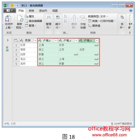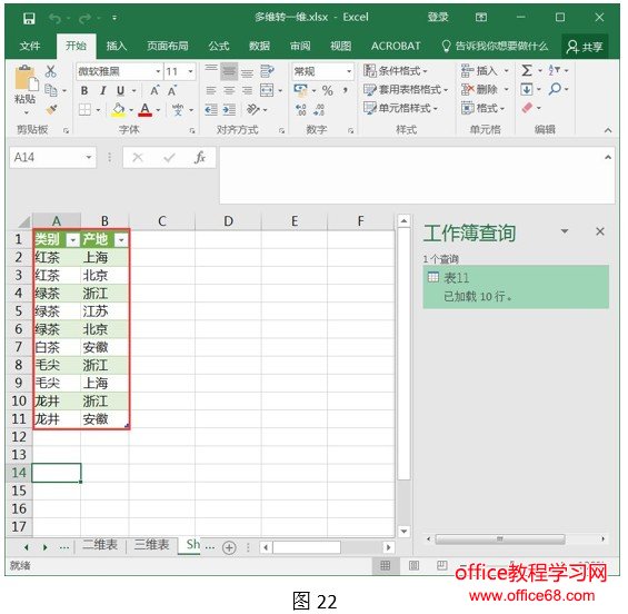 第六步:此时,将变成如下图所示的表格。这里选中混合表中的产地区域。