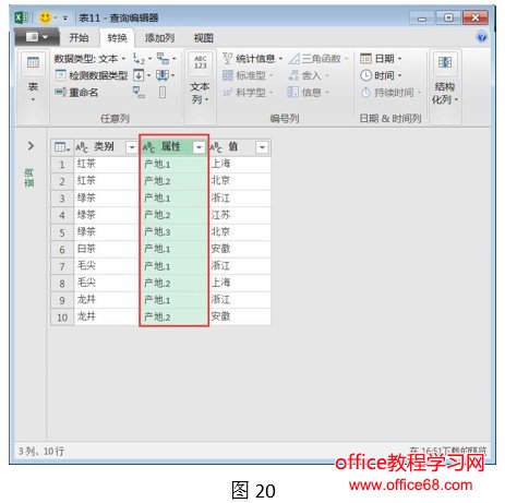 第七步:选择“转换”选项卡,单击“逆透视其他列”按钮。