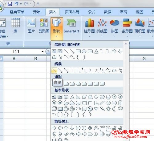 第二,1,第二种方法就是利用excel当中的形状来连接,我们可以点击菜单栏的插入,然后就是形状,在形状下拉菜单中,我们可以看到有斜线,点击就可以来用作斜线来连接啦。