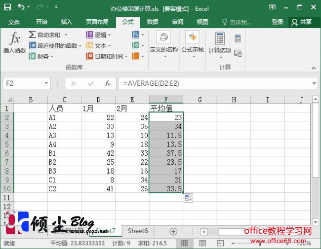 Excel中平均值的求法非常常见,下面介绍一下Excel中平均值的求法。 操作步骤1、选中F2单元格(要填入平均值的单元格),在【公式】选项卡【函数库】组中,单击【自动求和】下方的下拉按钮,选择【平均值】。