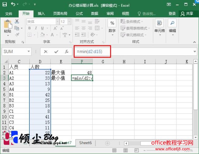 2、选择最小值的方法:选择要填入最小值的结果单元格上,在最上面的函数【fx】中输入【=min(d2:d15)】,(填入的是要选择的范围),输入后系统自动选中输入的范围。最后单击【enter】键,即可显示最小值。