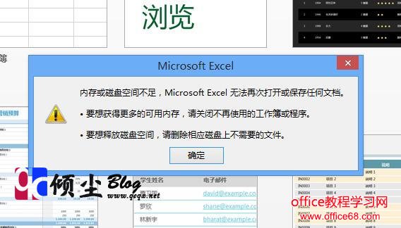 在Excel2016或者2013中打开新建的空白文档提示:内存或磁盘空间不足,Microsoft Excel无法再次打开或保存任何文档。