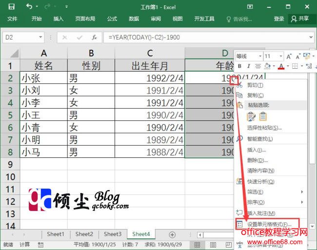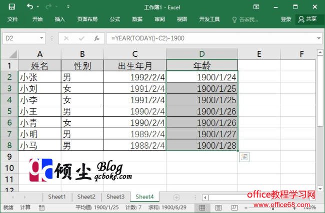 在公司员工档案中可以详细的知道员工的出生年月信息,通过Excel的公式可以快速的获取员工的详细年龄。下面我们来说下如何使用Excel计算员工的详细年龄。 操作步骤1.打开Excel员工信息表格,在年龄下面的单元格输入公式”=YEAR(TODAY()-C2)-1900″,如下图
