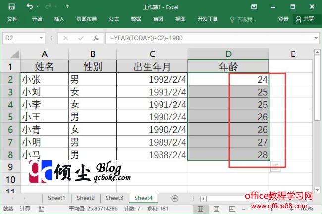 4.此时年龄下面的单元格中已经显示当前员工的年龄了。如下图