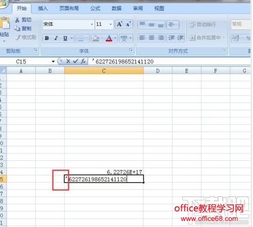 3、切换单元格,我们可以在数字前面加一个英文的'单引号然后接着输入数字。