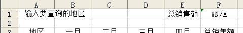 按回车确认后,由于C1单元格为空值,所以F1单元格显示错误值“#N/A”