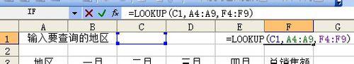 选择F1单元格,输入“=LOOKUP(C1,A4:A9,F4:F9)”