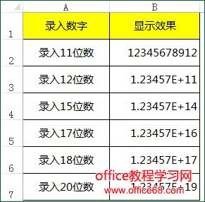 默认情况下,Excel中每个单元格所能显示的数字为11位,输入超过11位的数值,系统自动将其转换为科学记数格式,如果输入超过15位的数值,系统自动将15位以后的数值转换为“0”。比如123456789012,就会显示为1.23457E+11。