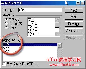 这样,数据透视表中仅显示页数据项中没有隐藏的数据项. |