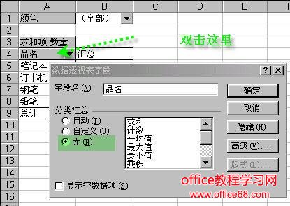 1. 双击字段按钮, 打开数据透视表字段对话框..
