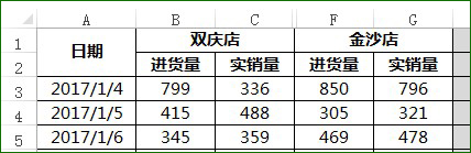 下面截图的EXCEL表,D:E列是隐藏的,我们可以双击鼠标取消隐藏。操作方法是:选择C:F列,鼠标放到隐藏列的位置,当鼠标成十字形时,双击就可以取消隐藏。
