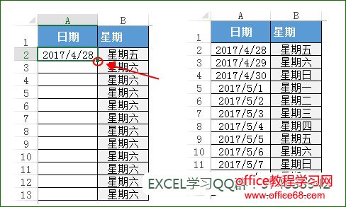 第五,双击快速填充公式或值 单击A2单元格,鼠标右下角出现十字形状时,双击可以向下填充。效果如右边所示。