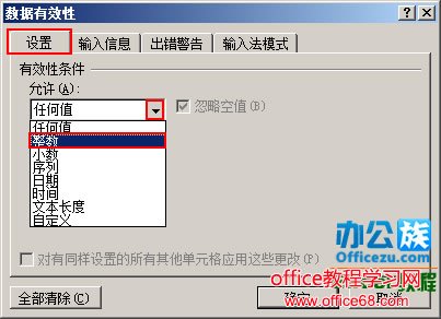 提示:大家也可以同时选中多个单元格进行数据有效性的设置,当然,这种情况会使它们对数据产生相同的有效性设置。