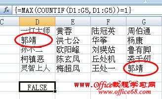 然后用MAX函数返回数组中的最大值,如果不为“1”公式就返回FALSE,否则返回TRUE