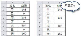选中不显示0的区域,设置条件格式为“单元格数据”、“等于”、“0”,将“单元格格式”字体设置为白色,(若选定单元格已设置了底色则应选择与底色相同的颜色)。