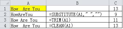 一、去掉字符串前后空格 ![]() 以A1单元格的数据源,分别用TRIM、CLEAN 和 SUBSTITUTE 函数去掉空格后的效果为A2:A4区域。 |