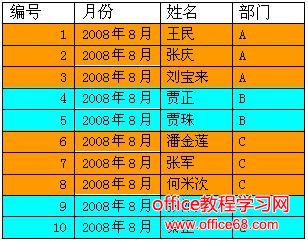 1)选定范围――格式――条件格式――公式输入=MOD(COUNTA($A$2:$A2),2)=1,指定一底纹 2)按已排序的部门来设置间隔底纹 ![]() 3)最多输入两位小数的价格 |