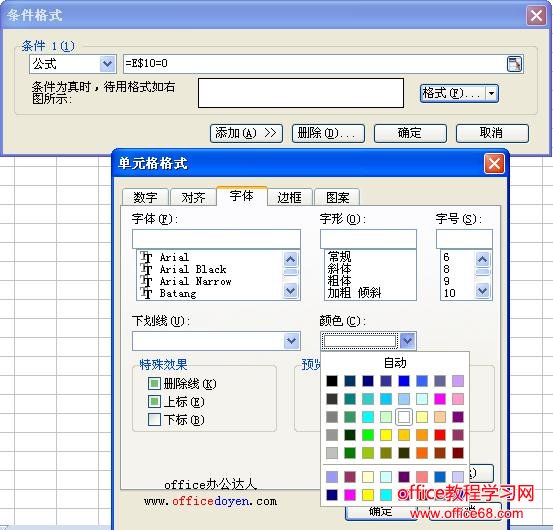 如何快速复制条件格式问题,本文将介绍你如何快速复制条件格式。如下图,如何将未到日期的日报表数值隐藏起来?保证报表的美观。 第一步:如上例选E2:E10,点击格式-条件格式,选择公式,点击E10单元格,显示=$E$10,注意:为后续复制条件格式,这里需要将E列的绝对引用符号$去掉变为=E$10,然后输入0,在格式按钮中设定格式,表示当合计为0时,E列数值的字体为白色,如下图1: 图1 设置条件格式