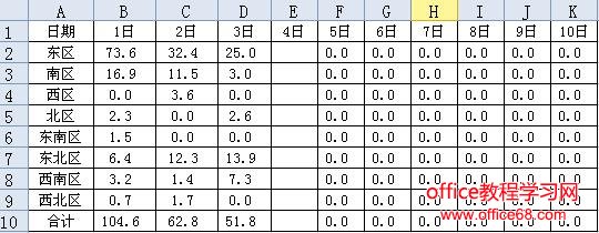 经常做日报表的职员常常要用到链接,链接后未到日期的数据会显示为0,如下图,不仅影响报表美观,而且还会造成误解,业绩怎么会为0?如何让还没到日期的报表单元格不显示出来呢,office办公达人教你一招,用条件格式来实现。