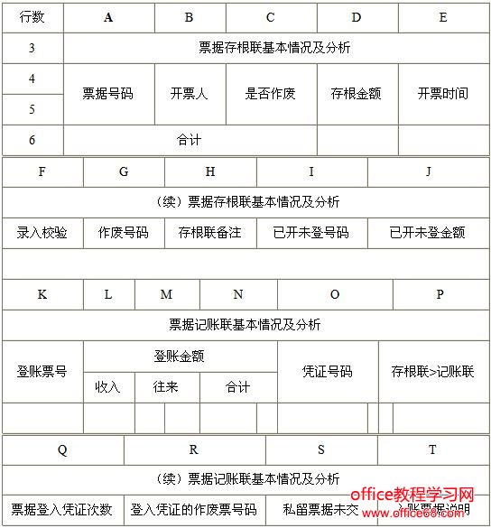 灵活运用EXCEL的绝对、相对地址,丰富的求和函数、条件函数和数组公式,并加以综合汇集,以实现票据程序模块的全部功能。程序将票据分成二大块:一是票据存根联基本情况及分析;二是票据记账联基本情况及分析。