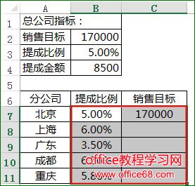 总公司规定:完成17万的销售业绩,按照5%的提成,当月员工可以拿到8500元。但每个分公司,由于地区差异,结合开展业务难易程度不一样,所以给员工的提成比例不一样。