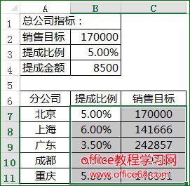 ![]() 单击“确定”,结果出来了哦。参考下图。北京的伙伴完成170000销售额,可以拿到8500,而上海的伙伴只需要完成141666销售额,也可以拿到8500元……