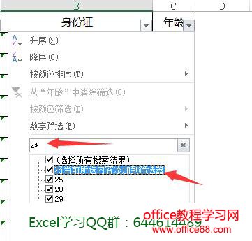 再打开搜索窗口,在搜索框中输入2*,勾选“将当前所选内容添加到筛选器"。