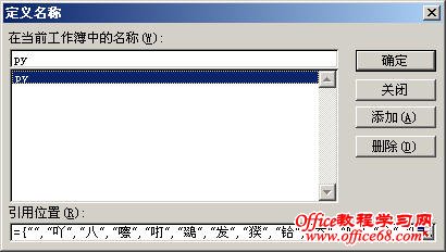 有时需要在Excel中将大量姓名或名称转换为拼音首字母的简写形式,例如将“周伯通”转换为“ZBT”。用定义名称和公式的方法可以轻松实现转换,在Windows XP中,以Excel 2003为例方法如下: 1.定义名称: 单击菜单“插入→名称→定义”,在弹出的对话框中“在当前工作簿中的名称”下的文本框中输入一个名称,如“py”,在“引用位置”下输入下列代码后确定: ={"","吖","八","嚓","咑","鵽","发","猤","铪","夻","咔","垃","嘸","旀", "噢","妑","七","囕","仨","他","屲","夕","丫","帀";"","A","B","C","D","E", "F","G","H","J","K","L","M","N","O","P","Q","R","S","T","W","X","Y","Z"} 2.假如名单在A2:A100区域中,在B2单元格中输入公式: =LOOKUP(LEFT(A2,1),py)&LOOKUP(MID(A2,2,1),py)&LOOKUP(MID(A2,3,1),py)&LOOKUP(MID(A2,4,1),py) 然后拖动填充柄向下填充公式即可。 说明: 1.定义的名称为一个数组,以分号为界分为两行,第一行为汉字,第二行为与第一行汉字对应的拼音第一个大写字母。如果是Windows 7或Vista,则需要将定义的名称改为: ={"","吖","八","攃","咑","鵽","发","旮","哈","丌","咔","垃","妈","乸", "噢","帊","七","冄","仨","他","屲","夕","丫","帀";"","A","B","C","D","E", "F","G","H","J","K","L","M","N","O","P","Q","R","S","T","W","X","Y","Z"} 2.公式用LOOKUP函数将每个汉字转换成拼音的第一个大写字母。其原理是:Excel中汉字(文本)之间也可以进行比较;汉字在Excel中的排列顺序与拼音顺序相同,排在前面的“值”小于排在其后的。上述定义名称的数组中,每个汉字都是所有拼音首字母相同的汉字中的第一个,例如“八”在Excel中排在其他所有拼音首字母为“B”的前面,因而其“值”最小。因此,LOOKUP函数在查找某个不在数组中的汉字,如“伯”字时,会在数组的第一行中查找小于它的最大值“八”,然后返回最后一行同列的值“B”。 另外,由于在Windows XP与Windows 7、Vista中Excel对汉字的排列顺序有所不同,故定义的名称内容也不同。如果在Windows 7、Vista中使用XP中定义的数组,LOOKUP函数第二个参数中的值未按升序排列,可能无法返回正确的结果。 3.对于多音字只能返回一种结果。 4.如果有多于四个的汉字,继续在公式后面添加即可。如有第五个汉字,则加上“&LOOKUP(MID(A2,5,1),py)”。 |