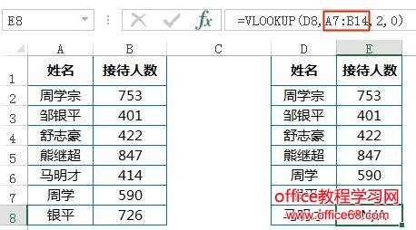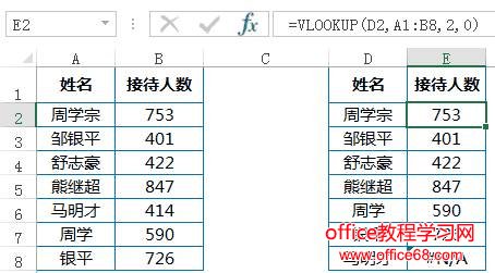 第三参数:在AB两列中查找,我们返回接待人数,第2列,没错。