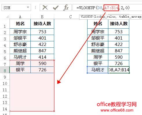 第二参数变成了A7:B14单元格区域,这个区域没有“马明才”,所以查找不到是正常的,excel并没有欺骗我们。