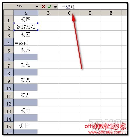 6、然后,在文档上方编辑栏中输入公式:=A2+1再按键盘的CTRL+回车键;