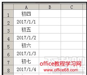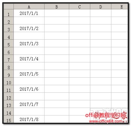 整列中隔行是空白行,在空白行插入日期 1、现在,要在A列中隔行插入2017/1/1到2017/8的连续日期;