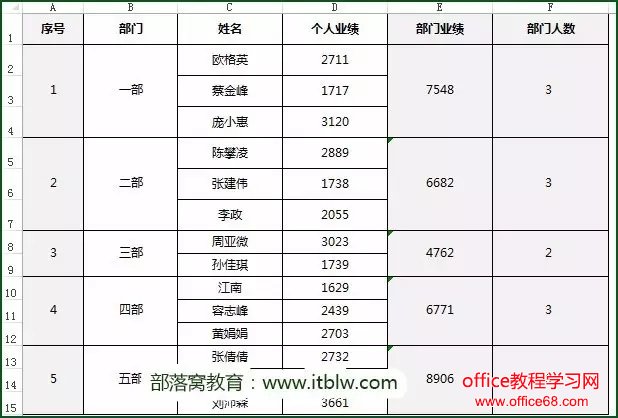Excel合并单元格真的很麻烦,是数据处理大忌。接着我们要统计部门业绩。