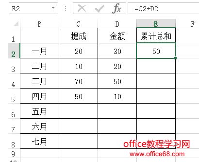 所谓累加嘛,相信大家都看得懂这公式,如果拖拽到七月,大概是这样子。如下图: