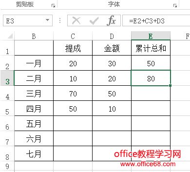 E2的单元格没什么问题,从E3单元格开始,要进行累计统计,公式应该怎么输入呢?这个也不难,大概是如下效果: