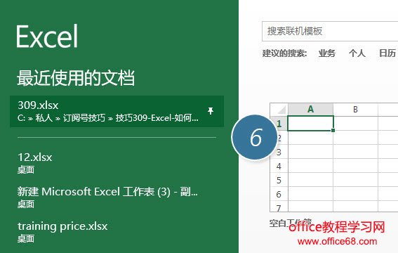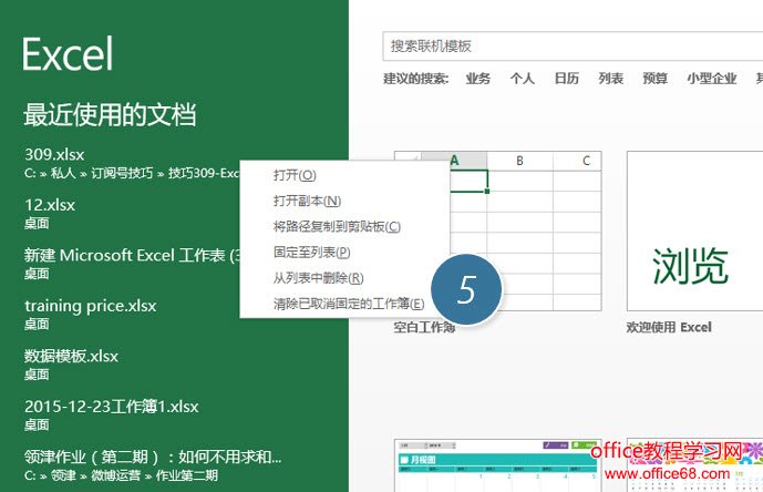 这还不是最厉害的,这个界面还有很多强大的功能: 在下图 5中,最近使用的文档是显示最近使用过的Excel工作簿,点击鼠标右键,会发现有着非常强大的功能。