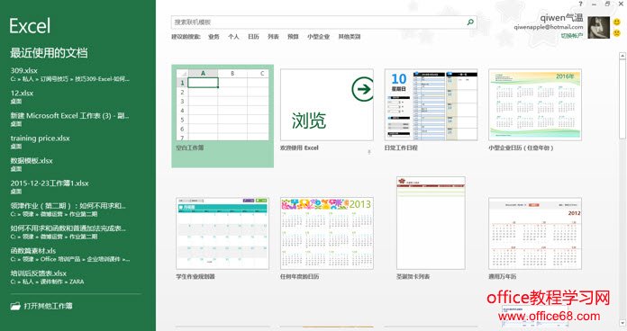 如果直接执行Excel2013每次打开都会出现一个“模板”界面(如下图),每次都要去关闭这个界面,会感觉这个操作有点“浪费”,有没有什么方法可以关闭这个模板界面?