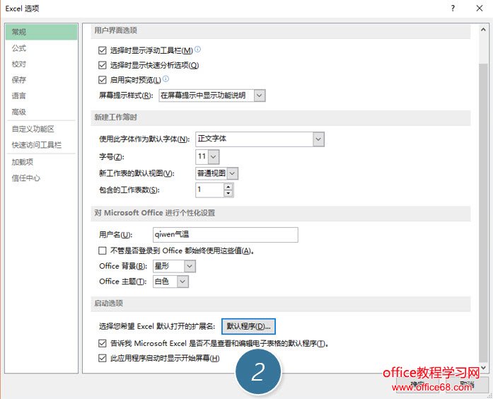 将Excel选项“常规-启动选项-此应用程序启动时显示屏幕”前的勾去掉即搞定。(下图 2 处)