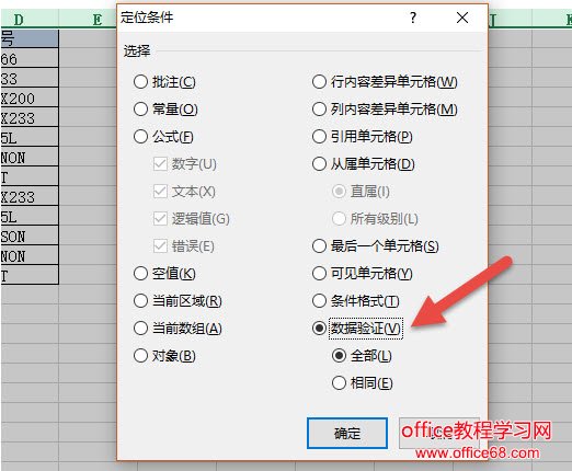 在新弹窗口中选中“数据验证”。然后点击确定。