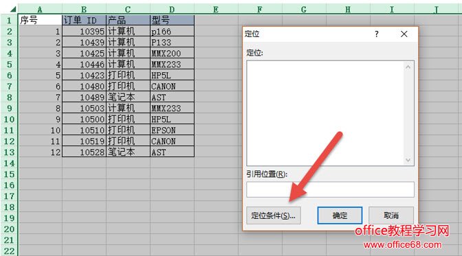 接着按键盘上的F5键。填出定位窗口,单击下图的“定位条件”。(下图箭头处)