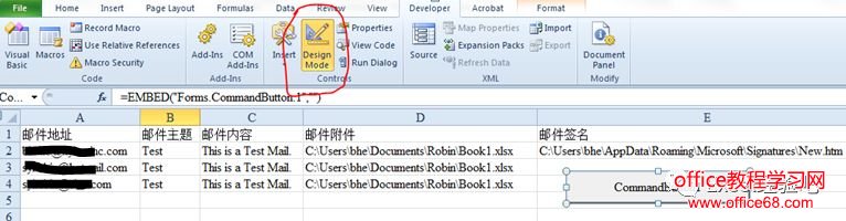 .To = Cells(rowCount,1).Value '设置收件人地址(从Excel表的第一列"邮件地址"字段中获得) .Subject = Cells(rowCount,2).Value '设置邮件主题(从Excel表的第二列"邮件主题"字段中获得) .HTMLBody = Cells(rowCount,3).Value & Signature '设置邮件内容(从Excel表的第三列"邮件内容"字段中获得) .Attachments.Add Cells(rowCount,4).Value '设置附件(从Excel表的第四列"附件"字段中获得) .Send