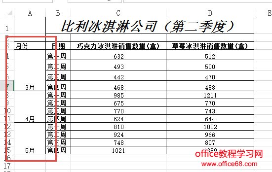 如何实现样图的都多标签表达呢?只需对数据区进行改造就可以了。增加一列,并设置好月份,注意需要合并单元格。下图红框处。