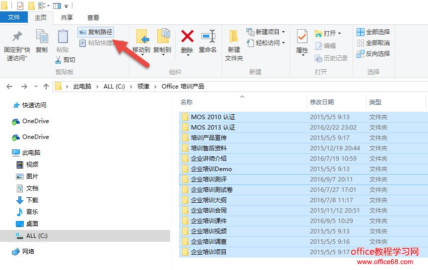 按Ctrl+A批量选中所有的文件夹,然后点击“复制路径”按钮。(下图箭头处)