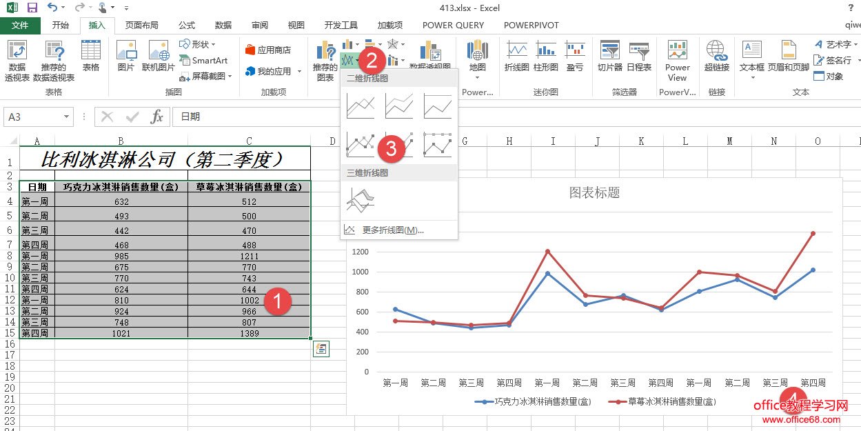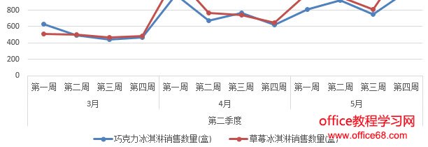 举例如果我们要生成下表中比利冰淇淋公司第二季度的两种巧克力冰淇淋的销量走势。