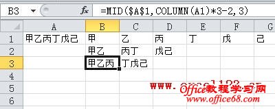 分列的宽度为3个字符时,在B3单元格中输入公式: