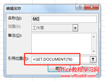 excel宏表函数大全之五:GET.DOCUMENT宏表函数 GET.DOCUMENT用于按照指定信息类型返回名称。 GET.DOCUMENT函数语法: GET.DOCUMENT(type_num, name_text),type_num:指明信息类型的数字,一共有88中数字代码表示88种类型。 通常使用GET.DOCUMENT(76)和GET.DOCUMENT(88)来返回活动工作表和活动工作簿的文件名。 举例: 第一步:打开【名称管理器】新建一条名称记录。我们设置名称为MC,引用位置为=GET.DOCUMENT(76),单击【确定】后关闭【名称管理器】。