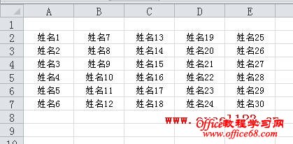 在Excel中将多行多列数据转换到单列的方法有很多,本文介绍用公式进行转换的方法。假如Sheet1表的A2:E7区域有6行5列的数据需要转换到Sheet2表的A列,如图所示。